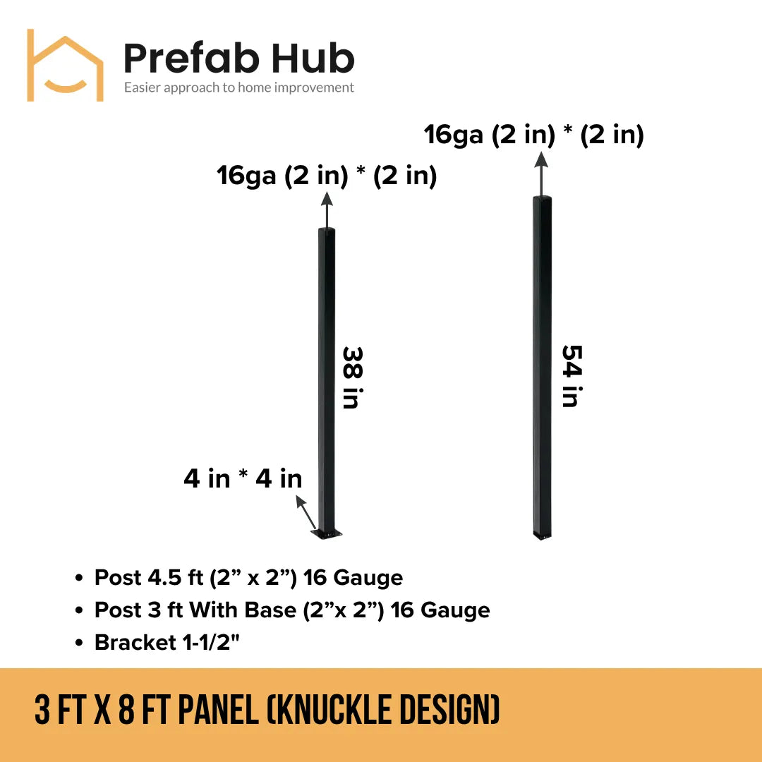Prefab Hub offers Wrought Iron Fence Panels (8 ft wide, heights 3–8 ft) and Aluminum Fence Panels (6 ft x 6 ft). Both are durable, stylish, and designed for long-term use.