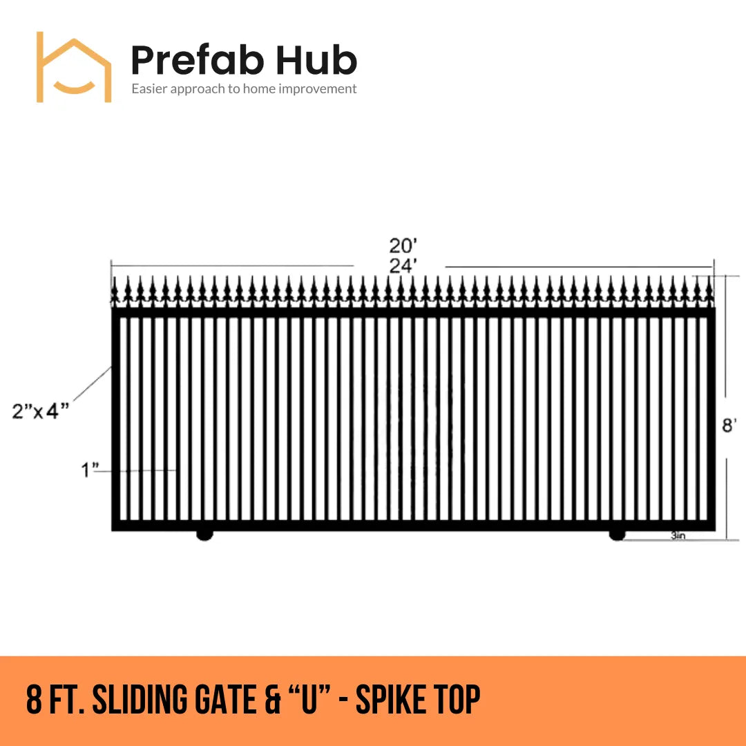 Gates & Door - 8ft Sliding Gate with U-Shaped Track - Spike Top