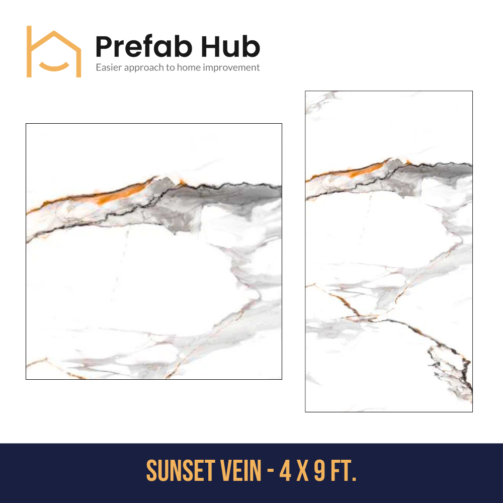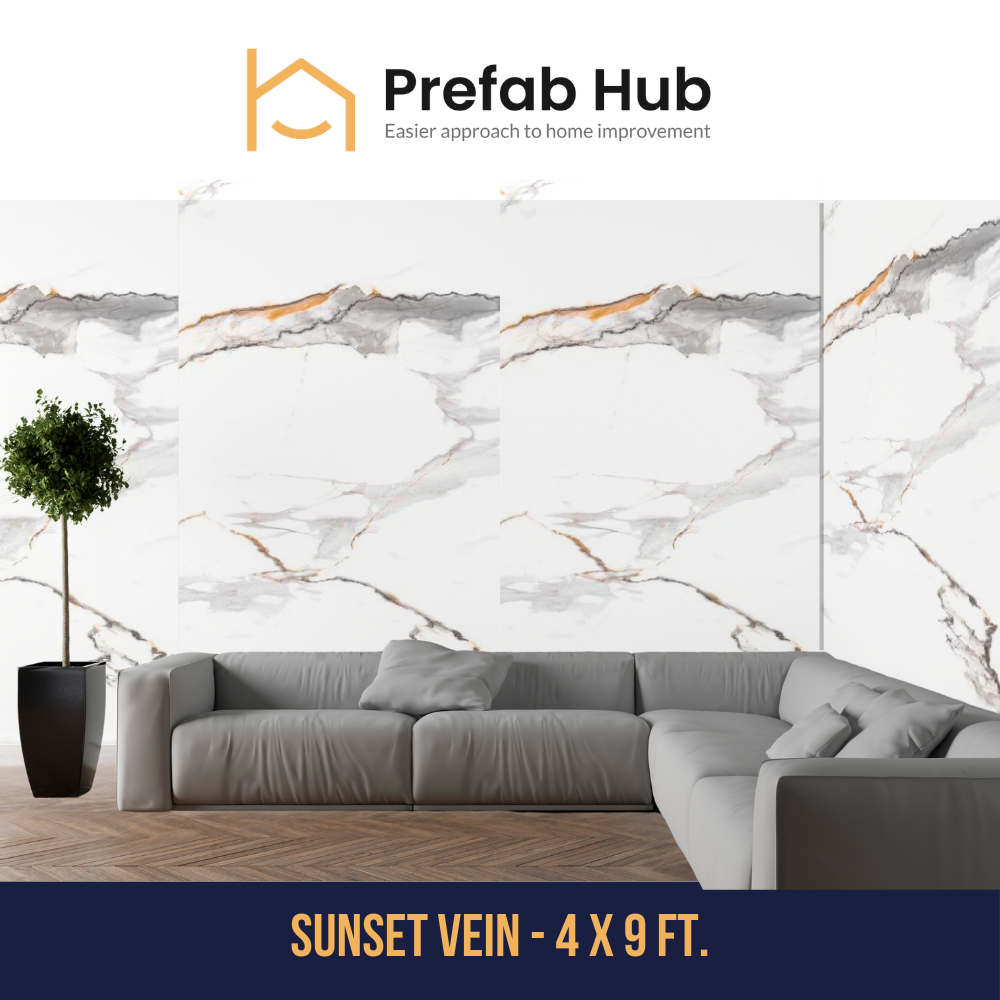Transform your space effortlessly with Sunset Vein PVC Marble Panels from Prefab Hub. Contact us today for more details!