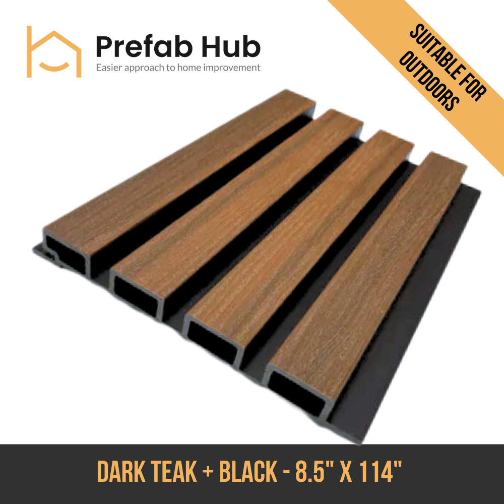 WPC Exterior Slat Wall Panel - Dark Teak + Black